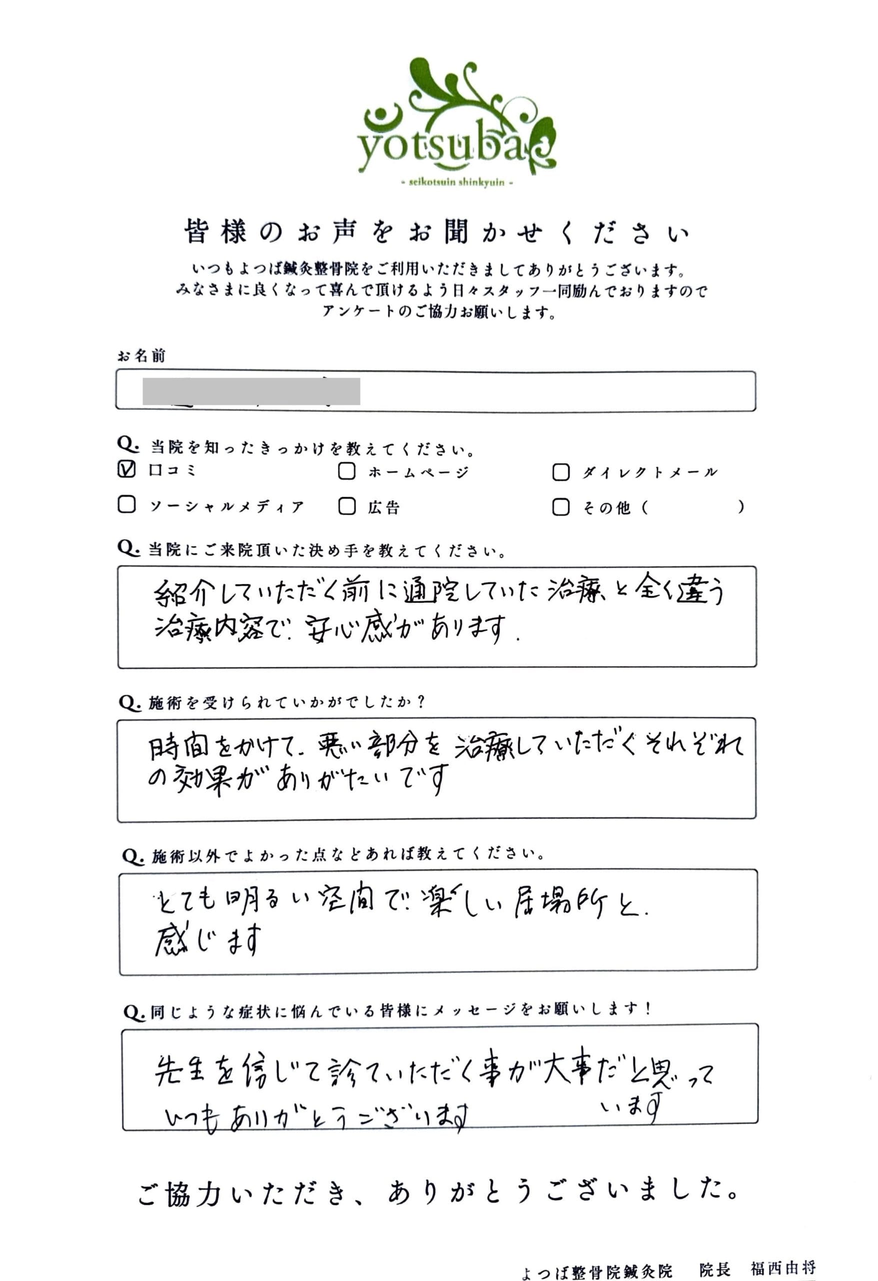 よつば整骨院に寄せられた皆さまの声の一部です。